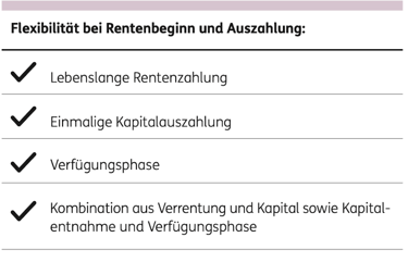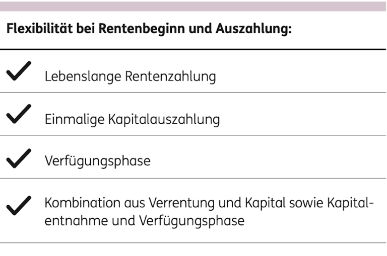 Bei Kapitalauszahlung sind lediglich 50% des Ertrags zu versteuern, wenn Auszahlung ab Alter 62 und Mindest- laufzeit 12 Jahre.